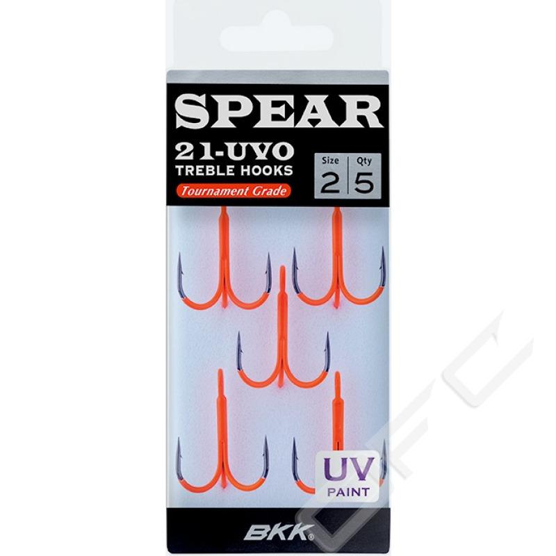 BKK Spear-21 UVO är utvecklad för djupt sötvattensfiske för att tillåta fiskare att fiska effektivt i situationer med dåliga ljusförhållanden samt djupa och mörka vatten. Krokens färg säkerställer att predatorerna kan se betet på längre håll och färgen gör det även enklare för fisken att sikta in sig på betet vid hugg.