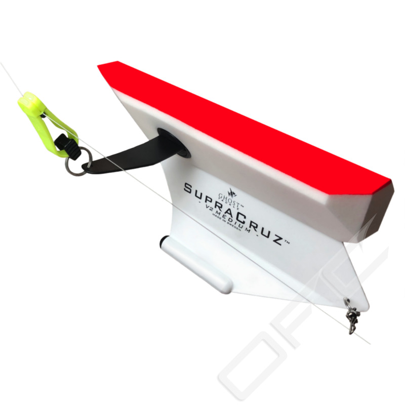 SupraCruz finns i än så länge bara i storlek Medium. Mediumstorleken är det givna valet vid vandringslaxfiske eller gäddtrolling med stora beten. Paravanens höga bärighet och dragstyrka gör att blysänken långt över 100g, eller flashers, kan användas.
