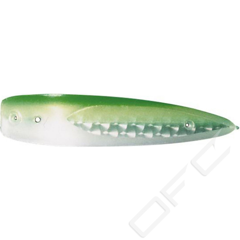 Klassisk och populär trollingsked tillverkad i plast som kommer med färdigknuten tafs, lekande och krok i rätt storlek.