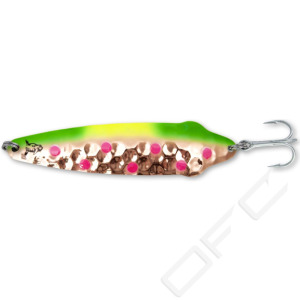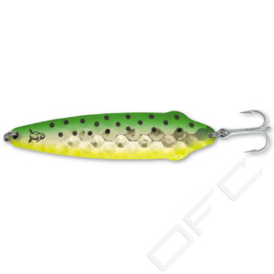 Improved aesthetics thanks to the golden spoon. Exceptional in sunny weather at the surface and down to 15 metres on a downrigger.