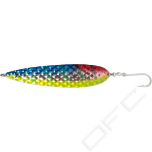 After the successful launch of the Salty Diamond in size XL for salmon fishing, many anglers now want to use its successful colours for sea trout and cod fishing as well. For these species smaller baits are used, as they more closely resemble the preferred prey pattern. That is why we have now added the Salty in size M as well. The special structure of the spoon is visually highly attractive to the predators