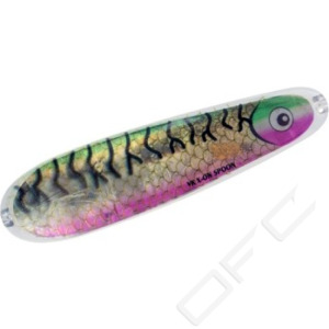 VK Salmon X-ON Spoon är en trollingsked som är gjord i plast och har en unik simmande gång som imiterar en skadad fisk! Trä linan igenom ett hål som finns framtill på skeden och ut i ett hål baktill. Du kan justera gången på skeden beroende hur långt ifrån du väljer att ha kroken.