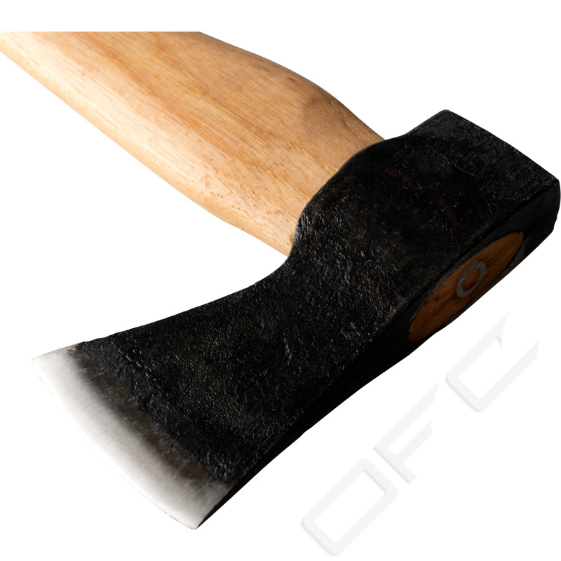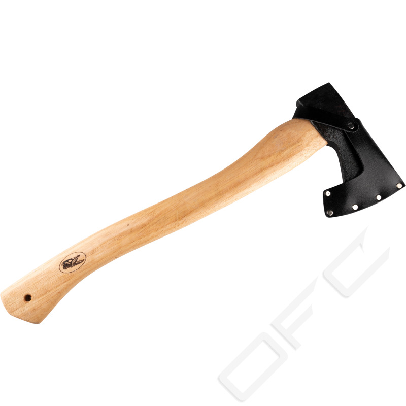 Smidda av 45# kolstål som härdats till 48-53HRC. Skaften är tillverkade av amerikansk hickory som oljebehandlats. Levereras med eggskydd av naturläder. Skogsyxa med 50cm långt skaft och 700g huvud är en bra yxa för att klyva ved eller ta ner mindre träd.
