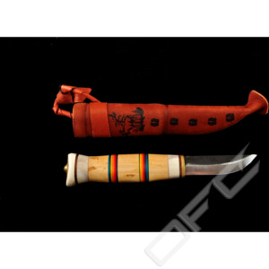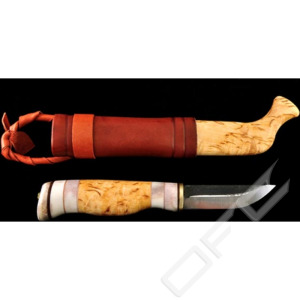 Skaft av masur och masur/björk. Spillbitar har tagits tillvara, därav det låga priset på denna kniv.