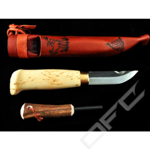 Skaft av masur och masur/björk. Spillbitar har tagits tillvara, därav det låga priset på denna kniv.