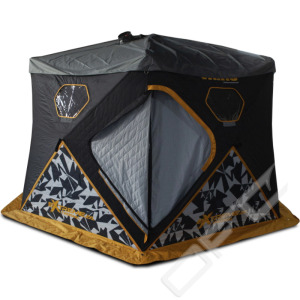 Väinö Bunker XL tältgolv. Öppningsbara hål i golvet för isfiske. Gummi vattentätt membran i tyget. Håller kläder och utrustning torr i tältet. Vikt endast 3,0 kg